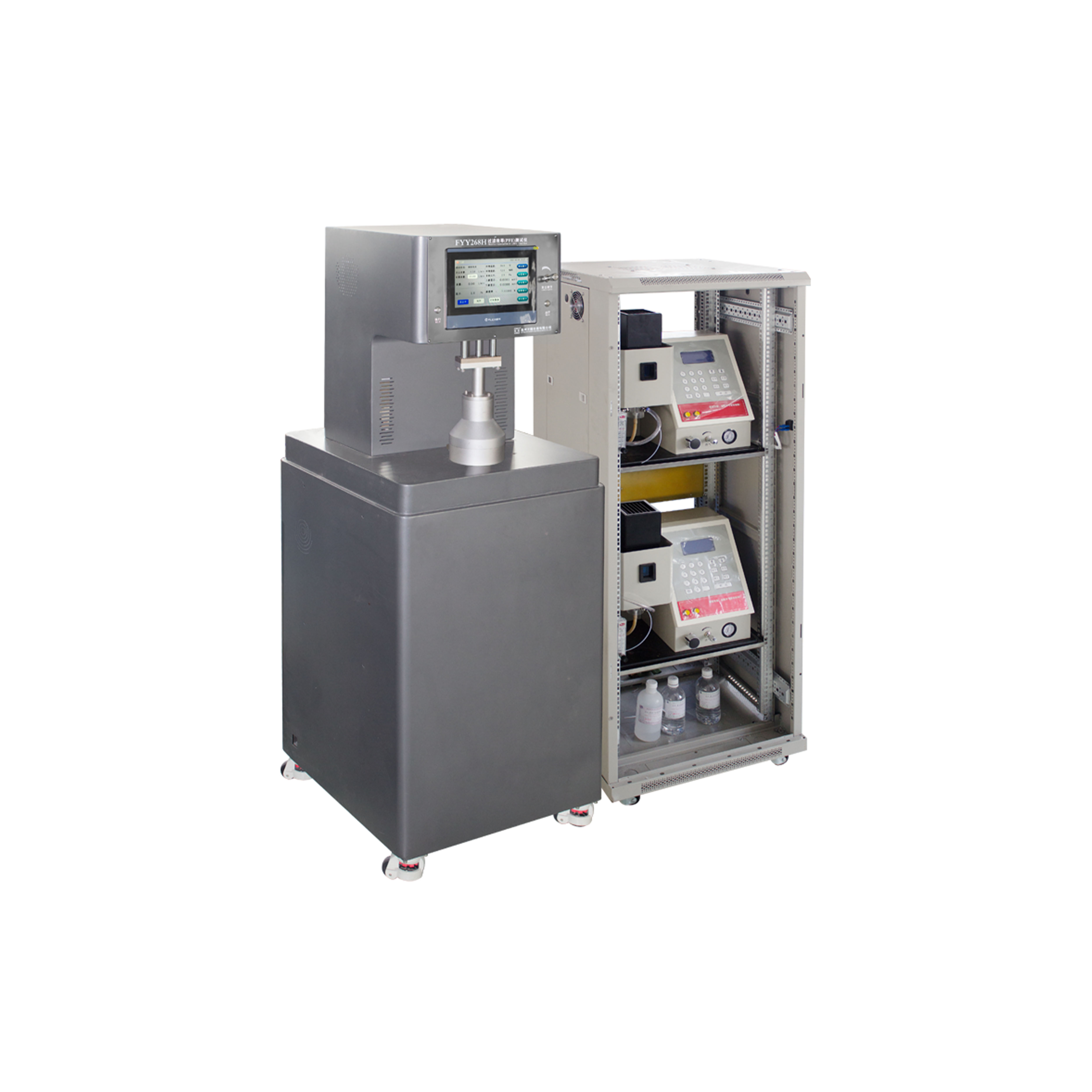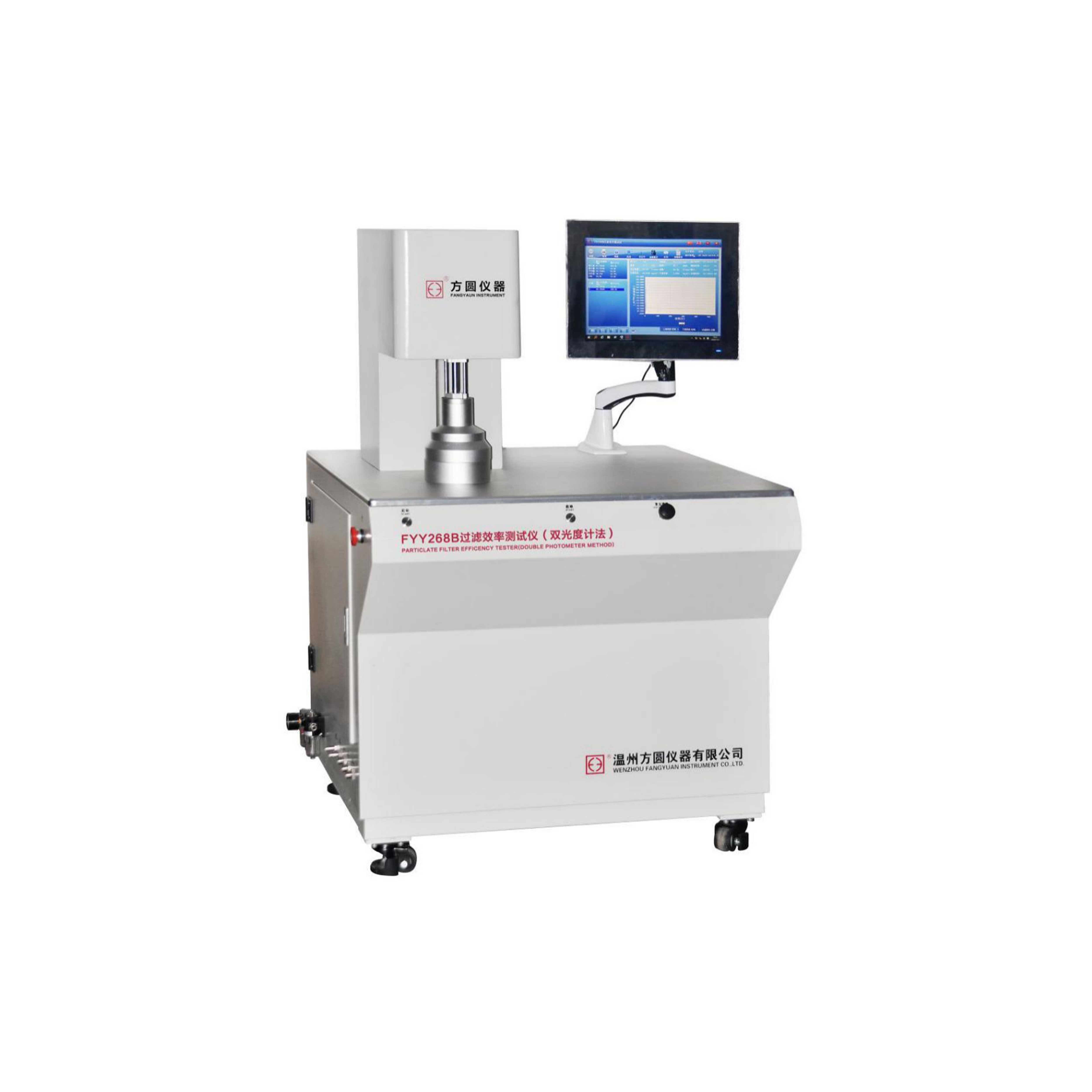 FYY268B過濾效率測試儀(雙光度計法) GB 2626-2019、GB/T 32610-2016、GB 19083-2010、YY 0469-2011、GB 19082-2009、GB/T 38880-2020、EN1822-3:2012,EN 149-2001,IEST-RP-CC021.1,NIOSH 42 CFR Part 84,ASTM F2100-2011,EN 14683:2005,日